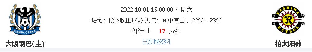 北京时间2022年10月01日15时00分,日职联2022赛季第31轮赛事,大阪钢巴vs柏太阳神,主队面临降级压力十分巨大,本场对阵有联赛客场龙表现的柏太阳神,能否发挥出十足的实力争取积分呢?让我们一起期待!