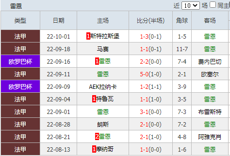 1、雷恩在班底阵容有保证的情况下,当前球队在法甲联赛中的走势较为平稳,9轮赛事下来,球队稳扎稳打,取得了4胜3平2负的成绩,暂居积分榜第6位。
