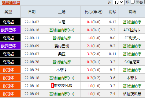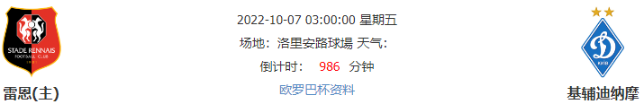 北京时间10月07日03点00分,22-23欧罗巴联赛小组赛第3轮的一场比赛,基辅迪纳摩将前往洛里安路球场与雷恩展开较量。基辅迪纳摩当前在欧罗巴赛场上的表现起伏不定,本次客战雷恩,球队胜算不大。