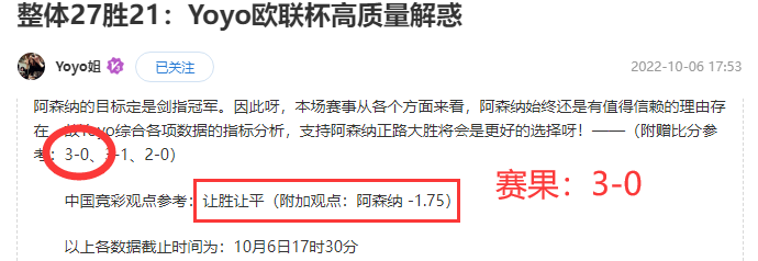 昨晚周四私推拉齐奥多进球失误,核心临场近17胜12!而公推皇社少进球0-2完美打出,公推近11胜9表现杠杠哒!另外,超级重点欧联杯方案阿森纳3-0稳稳取胜,670%比分彩蛋再次击出!