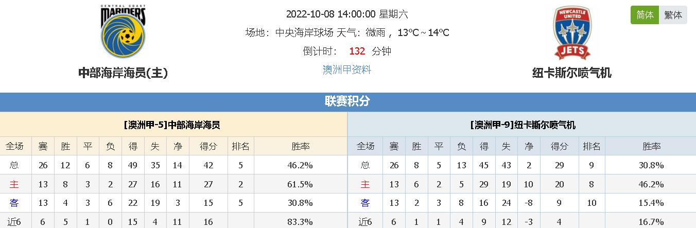 北京时间10月08日14:00,澳洲甲2022-2023赛季首轮,中部海岸海员vs纽卡斯尔喷气机,两支常年徘徊澳洲联赛的中游球队,对赛季首战的态度毋庸置疑,均希望取得新赛季的首胜来为后续的抢分打气,势均力敌之下能否顺利分出个胜负?让我们一起关注!
