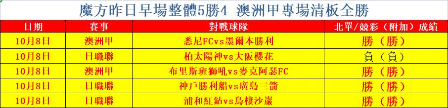 魔方昨日狀態出色,早場整體5勝4,正向+3!其中澳洲甲專場首發更是清板全勝!今日早場澳洲甲專場正在進行歡迎關註!魔方將繼續努力,追求精益求精。