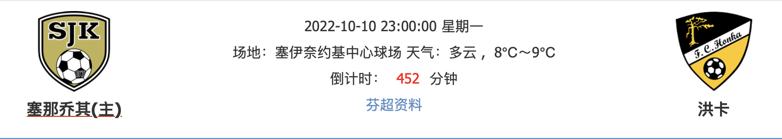 北京时间2022年10月10日23点00分, 洪卡此役能否复仇成功?反客为主?塞那乔其捍卫主场能否如愿?