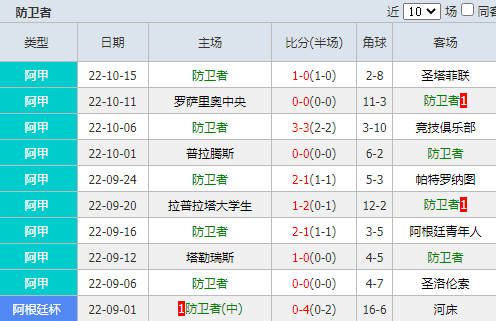 1、和主队相比,防卫者在联赛第二阶段中的发挥就要稳定一些,尤其是近段时间,在上轮比赛1-0小胜圣塔菲联后,他们已经连续7轮比赛保持不败。