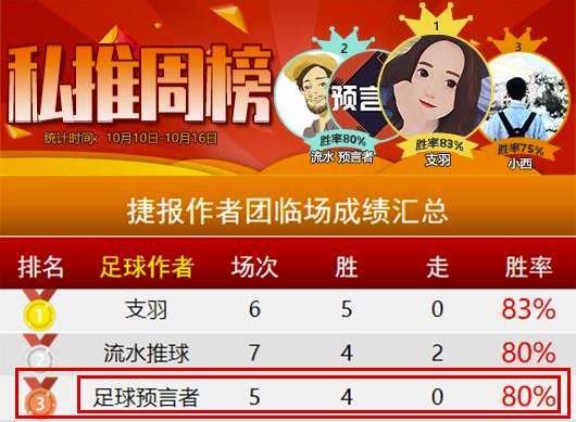 勇闯周榜第三且并列第二,上周以80%胜率,表现相当出色。昨天周六,取得双胜!私推为大家送上一场焦点的英超大战,为大家送出曼联方向,结果竞彩及附加都顺利拿下;大家应该要有长期的计划,简单直接的方法就是开启包周业务,笔者必须会带领大家保持稳定的正向增长!