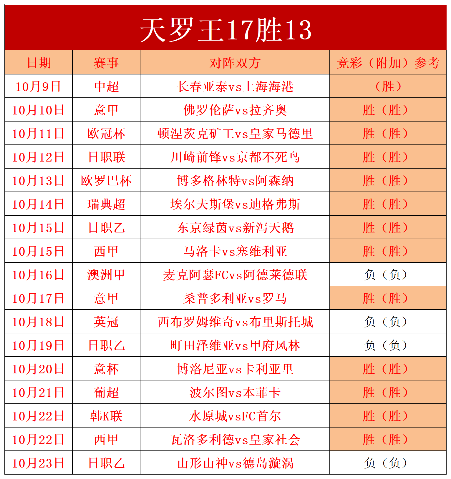 很遗憾昨天的日职乙赛事没有顺利拿下,截止现在竞彩附加整体成绩17胜13,胜率76%,笔者长期的战绩稳定,大家不要因为一两场比赛的失误而失去信心,今天笔者已做好调整,务必把昨天失去的拿回来,敬请期待。