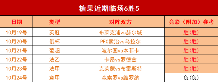 糖果连续2周胜率超7成!上周赞赏更是位居周榜榜首!欢迎各位朋友打赏或包周支持,按计划稳定迎利!昨天赞赏的意甲遗憾失利,赞赏遗憾定格于5连胜!今晚欧冠夜,力争胜回来!