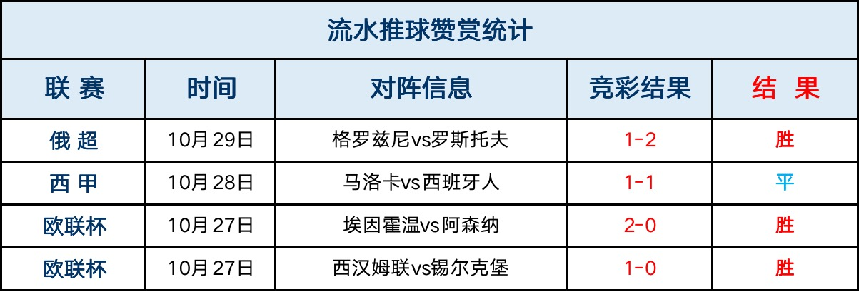 赞赏回顾:流水赞赏连战连捷,目前3连胜,昨天获得俄超约875%比分,格罗兹尼1-2罗斯托夫,赞赏方向顺利跑出。过往赞赏曾有过156天总体胜率近7成(不含走)的辉煌战绩,长期稳定,今天继续一起采摘果实!!!