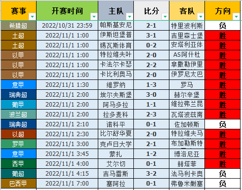 今天的比赛较多,笔者挑选了部分夜场比赛出来作为本期的参考,希望能够打出对应的高概率方向!