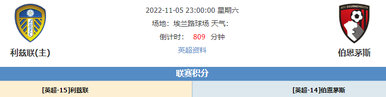 北京时间11月5日23:00,2022-23赛季英格兰足球超级联赛第15轮打响,利兹联主场迎战伯恩茅斯。利兹联在各方面均无明显优势之下,本场坐镇主场造势意图明显,这对于球队取胜十分不利。