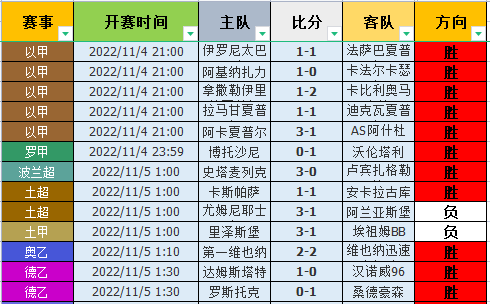 昨天数据整体表现惊人,晚场的13场有11场顺利打出,夜场的12场有9场顺利打出!昨天数据中,晚场的表现非常惊人,其中以甲的表现超出色,5场全部打出对应的高概率方向,且几乎是全部大获全胜拿下!而罗甲和波兰超继续拿下胜利,非常的给力!不过土超则是比较一般,2场一胜一负表现平稳!当然德乙的表现也是惊人的,2场都完美的拿下数据!夜场的表现也相当惊人,丹麦超主队5-1大胜对手,进球数完美的拿下,为夜场率先打开局面,非常的给力!当然波兰超的表现出色,主队完美的拿下!荷乙则是一胜一负表现平稳!另外令人惊喜的是,意甲、苏超和西甲都大获全胜的拿下数据,非常的出色!