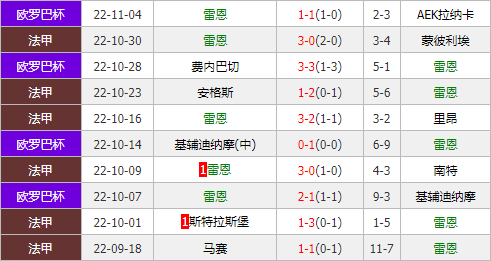值得提及到的是,雷恩在上一场的欧联杯中主场1-1战平塞浦路斯豪门AEK拉纳卡后,球队在近15场各项赛事中取得了10胜5平保持着不败的态势,球队近况表现相当出色!而且在这段超长的不败期间,雷恩累计轰入了35球之多,场均超过2.3球的进攻火力极其出色且稳定!而作为雷恩阵中的头号射手,本赛季为球队贡献了11球的前锋特雷尔自然功不可没,他与高尔利组成的前场组合肯定会成为其他队伍后防线上的噩梦~
