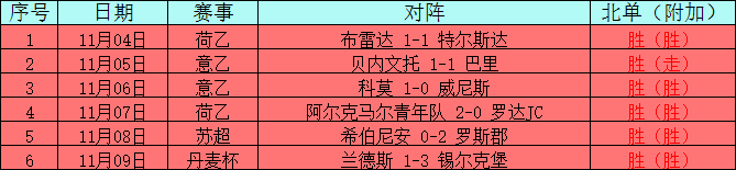月初休息调整了两天,回归之后,私推迎来了6连胜,状态火热,昨天私推的丹麦杯成功打出,锡尔克堡客场直接大胜!今晚继续加油,期待7连胜、8连胜,保持谨慎,追求质量,欢迎关注。
