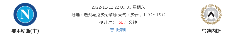 北京时间2022年11月12日22:00,2022-2023 意大利甲组联赛,那不勒斯vs乌迪内斯,此役是意甲联赛新赛季第15轮的较量,主队那不勒斯上轮联赛主场2-0零封恩波利,联赛至今保持不败,此役继续坐镇主场迭戈马拉多纳球场迎战乌迪内斯,两队如何对峙?下面由本作者为大家做详细阐述。