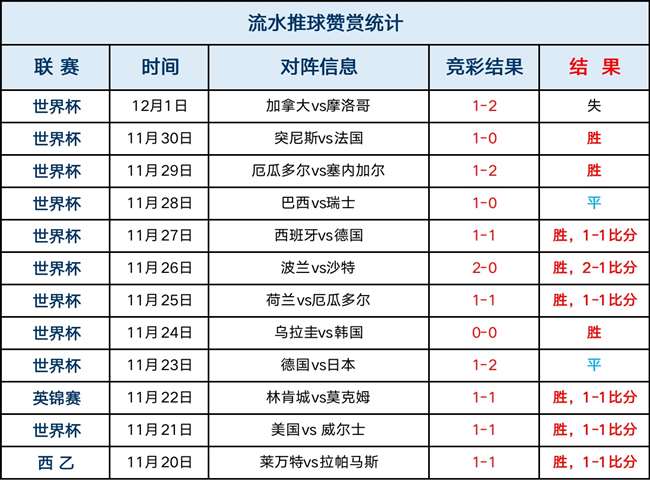 赞赏回顾:流水赞赏世界杯期间近10胜9,昨天加拿多断戟沉沙。过往赞赏曾有过156天总体胜率近7成(不含走)的辉煌战绩,长期稳定,今天继续一起采摘果实!!!