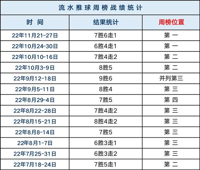 7月18-9月18,连续8周均入列周榜前四,其中7次前三;