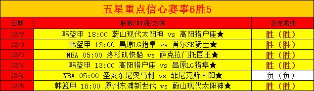 2、五星重点赛事重回正轨,近6胜5战胜完美呈现,五星重点一直是概率学家重中之重数据,参考价值非常高!