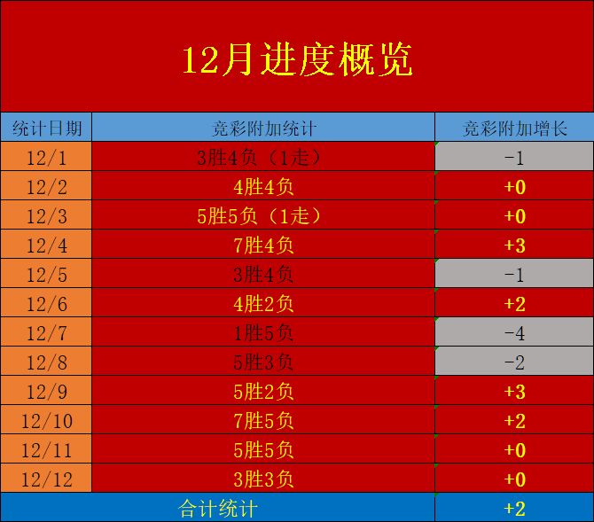 昨日两个板块合计提供了6场有效方向提示,以一个不过不失的3胜3的表现开启了本周上分的篇章,虽然未能从中取得值得一提的优秀成绩,但是纵观一周作为处于调整阶段下的笔者以稳定的后期发挥取得了不俗的平稳表现,目前进度与此前11月优秀的表现存在差距,但是根据整月时间参考笔者的上止点有着较大的扩充空间,以11月精彩进程为目标进发朝向性更加明确有保障。