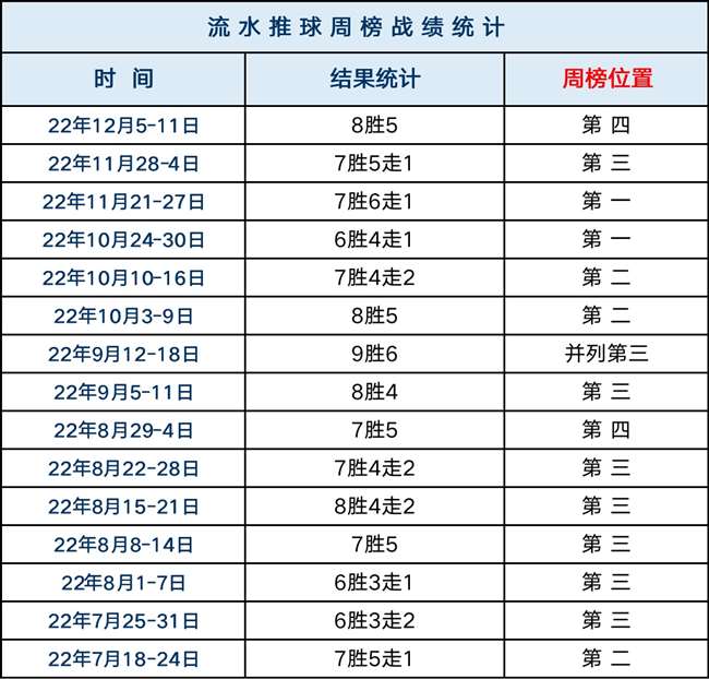7月18-9月18,连续8周均入列周榜前四,其中7次前三;