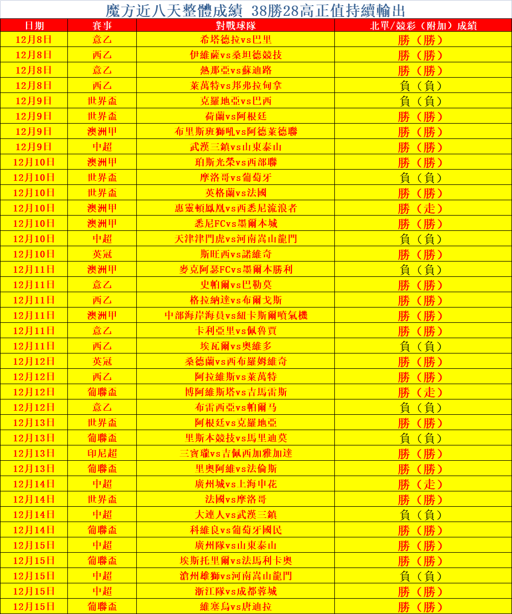 魔方昨日金場全勝!穩定拿下5勝4。近八天打出了38勝28的成績!連續八天保持得十分穩定,持續穩定打出正向!魔方今日對澳洲甲以及西乙賽事進行精研。魔方將繼續努力,追求精益求精。