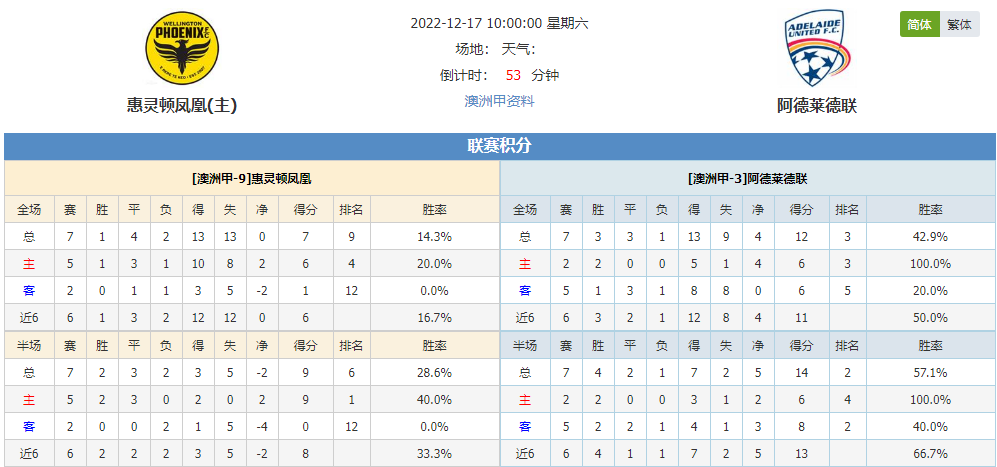 看点:惠灵顿凤凰上一场比赛主场1-1战平西悉尼流浪者,此役连续主场作战状态能否提升?阿德莱德联上一场战平布里斯班狮吼,此役作客对阵惠灵顿凤凰能否取胜?