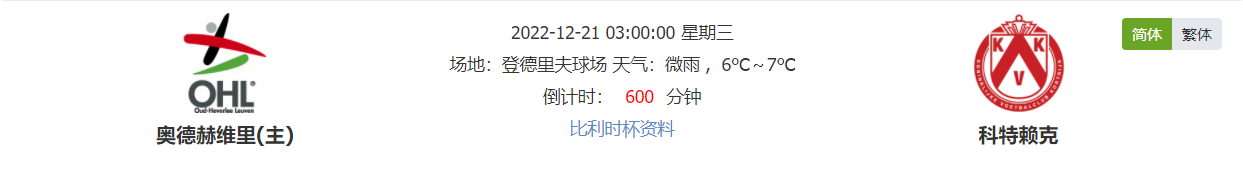 这场比赛,科特赖克的战意很成问题。本赛季科特赖克的发挥极为差劲,17轮联赛过后,科特赖克只打出了3场胜利,其余14场比赛球队3平11负,仅仅拿到12分,排名联赛倒数第二。为了保级成功,科特赖克已经换掉了两位教练,在11月22日球队签下了德国教练斯托克,这是本赛季球队的第三位教练。这位主帅在上任伊始就明确表示,球队会以保级成功位主要目标。球队主帅在赛前新闻发布会明确表示:“我认为更重要的是下周一主场对阵Genk的联赛。”所以本场对阵奥哈瓦里,球队大概率会对阵容进行调整。