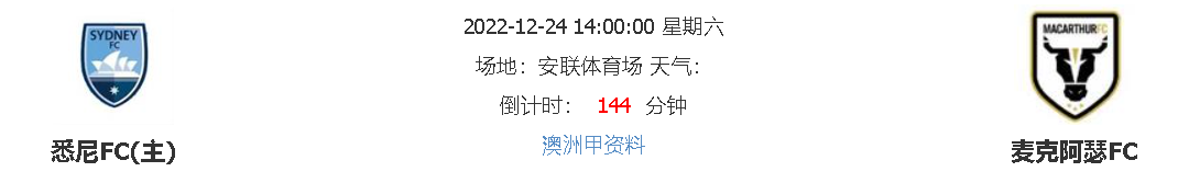北京时间2022年12月24日14:00,澳洲甲联赛2022-2023赛季第9轮比赛,悉尼FCvs麦克阿瑟FC,双方在赛季初期麦克阿瑟FC的主场为观众展现了一场酣畅淋漓的进球大战,本场双方主客互易之下会否有不一样的赛果?让我们一起拭目以待!
