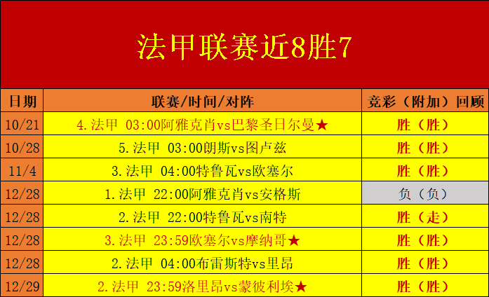 2、法甲联赛是近段时间里的添色板块,在近8场法甲的分析场次里取得了7场胜利的观点方向,而英超联赛也在近30场比赛里取得了20场的胜利观点,取得了净+10的优秀进度;