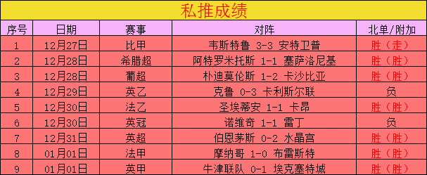 昨天私推2场全胜,法甲和英甲,非常顺利,收获2场美滋滋,私推迎来3连胜,近9场只失误2场,状态火热,今晚继续加油,新的一周期待开门胜,欢迎关注。