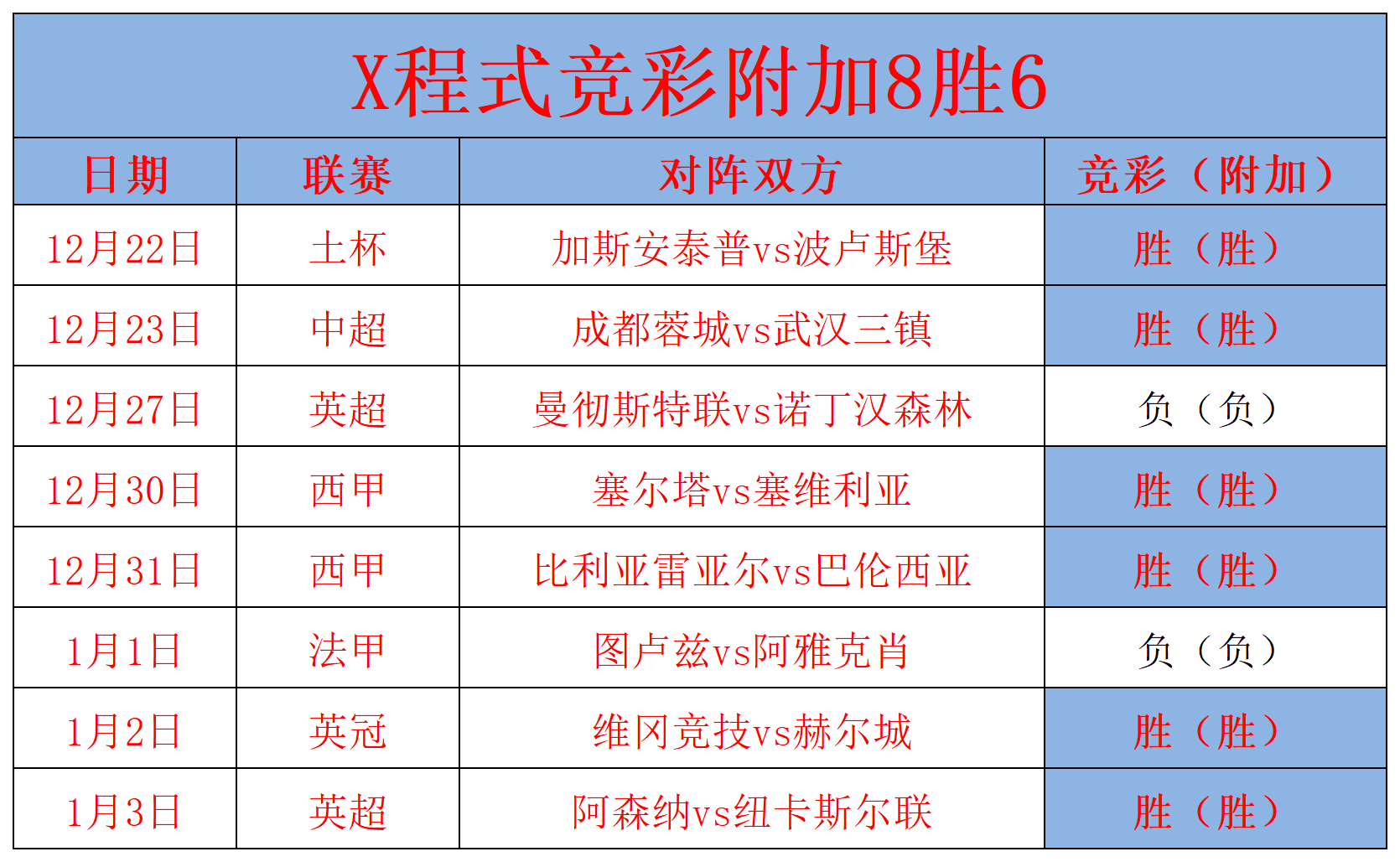 10月27日-11月06日勇夺竞彩12连胜的佳绩,其中10月31日-11月06日荣获成绩周榜第一名,精选参考14胜13走1,胜率100%