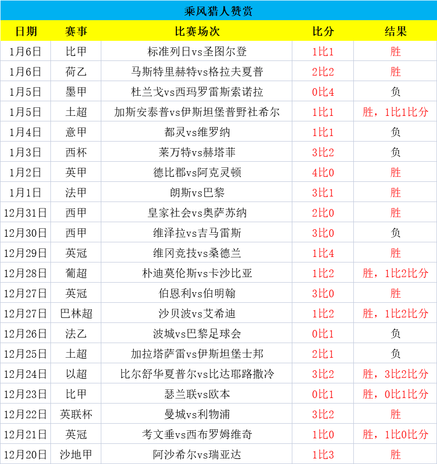 大家好,我是乘风猎人,职业数据分析师,足球经验丰富,研究足球数据数十载,期望能够乘风破浪,精准猎球制胜,欢迎朋友们长期关注!