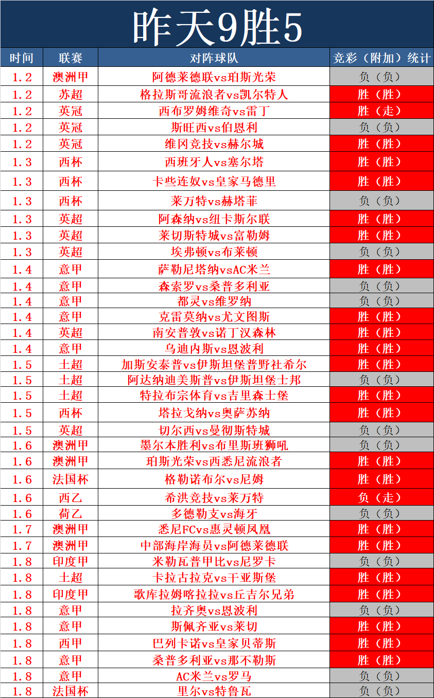 精彩分享:昨天表现稳定,合计9胜5,早场获得3胜2的成绩,近期早场的比赛成绩稳定,也是因为早场基本没有临场变化,今天重点在欧洲主流联赛。