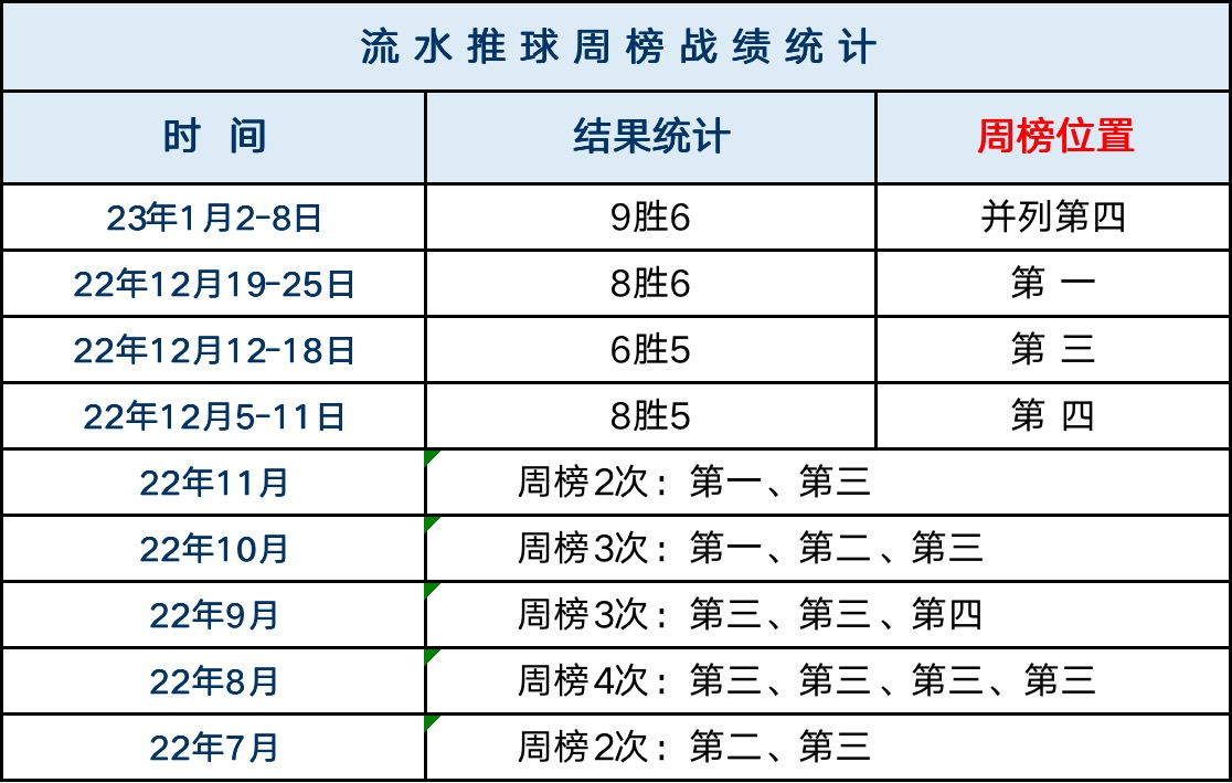 7月18-9月18,连续8周均入列周榜前四,其中7次前三;
