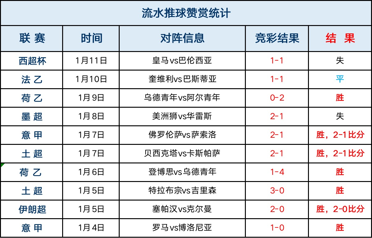 赞赏回顾:流水赞赏9胜7+55胜38,昨天西超杯失利。过往赞赏曾有过156天总体胜率近7成(不含走)、连续六周占据榜首的辉煌战绩,长期稳定,今天继续一起采摘果实!!!