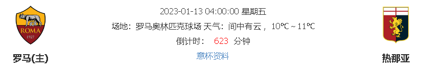 北京时间2023年1月13日04:00,意杯2022-2023赛季16强比赛,罗马主场迎战热那亚,双方近期在各自联赛近期有上升表现,但是作为昔日的意甲赛场的老对手罗马明显强上一班,此番比赛时罗马顺势出线还是出人意表遭到对手逆转?让我们一起拭目以待!