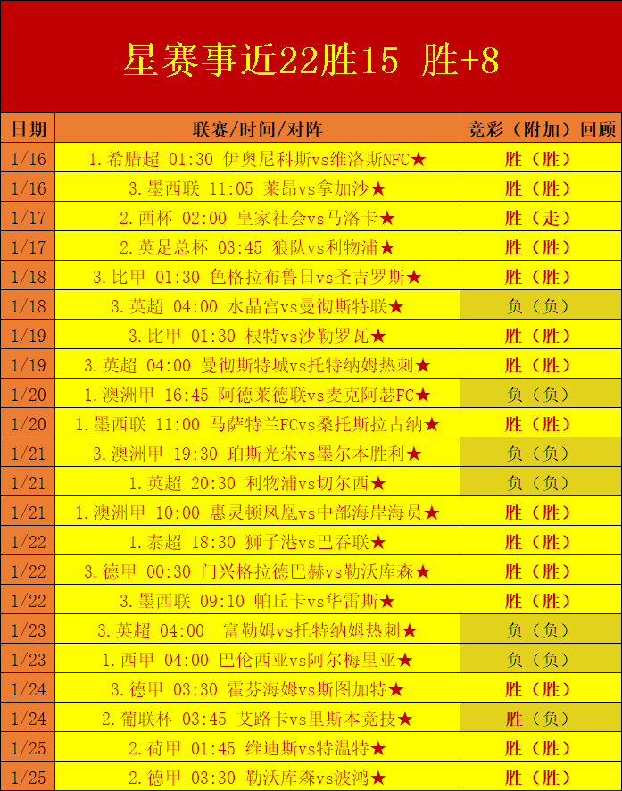 2.在近段时间里,作为主要信心支持的星赛事取得了22胜15,胜+8的优质成绩,而昨晚的星赛事更是再次取得了2战全胜的单日优秀增长表现,以稳定的成绩为每日比赛板块作出支持!
