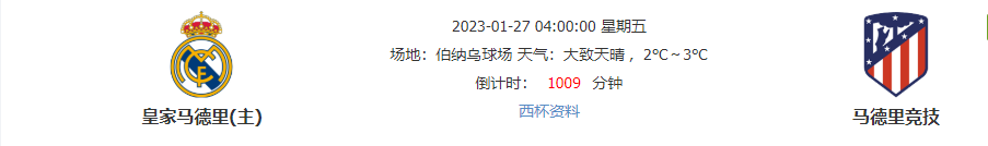北京时间2023年1月27日04:00,西班牙国王杯,皇家马德里主场对战马德里竞技,马德里德比从来不缺乏激情。本场比赛谁更有机会?竞彩数据对于两队又有如何倾向?近13场拿下9场的小明给大家带去精准分析,希望有一个不错的结果。今天加更重要情报,世界杯期间小明重要情报专栏12场拿下9场,深受广大朋友们的好评!