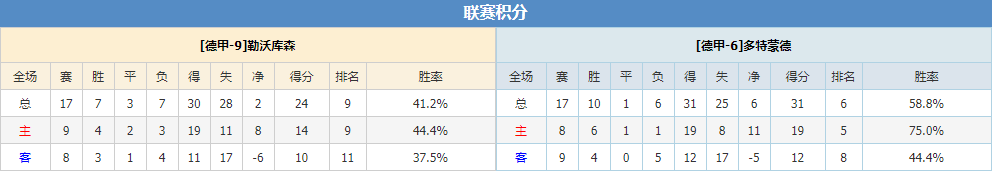 反观对手方面,“大黄蜂”多特蒙德在17轮赛事战罢拿下10胜1平6负的战绩暂列联赛第6,球队在少赛一轮的情况下与排名第4的弗赖堡其实仅剩3分的差距,只要本场赛事能够如愿取胜的话则有可能直接反超对手上升至第4,因此本场赛事对大黄蜂而已理应是一个绝佳的抢分机会?但需要值得提及到的是,多特蒙德在本赛季的9次作客出征的赛事仅取得4胜5负的战绩,期间丢了17球之多,异地作战能力相对一般。