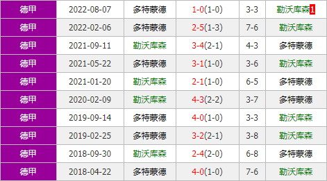 不过结合到对赛双方在近年来的10次交锋记录来看,其实药厂在面对多特仅取得3胜7负的劣势战绩,可见球队在交手方面还是会处于明显的下风,心理压力不小。