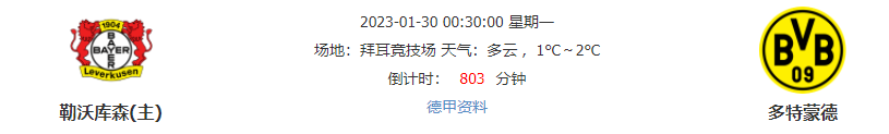 北京时间1月30日的凌晨00点30分,德甲赛事第18轮比赛的末组对决即将展开一场强强对话!——老牌球会勒沃库森将会在拜耳竞技场迎来“大黄蜂”多特蒙德的挑战!近期在进攻端火力全开的多特能否延续态势反客为主重返欧冠区?还是近况连胜不断的药厂能够保持状态捍卫主场?