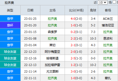 2、当前拉齐奥主场表现强势,在上轮主场4-0大胜AC米兰后,他们的主场已经连续4场保持不败,其3胜1平的战绩很是让人满意。