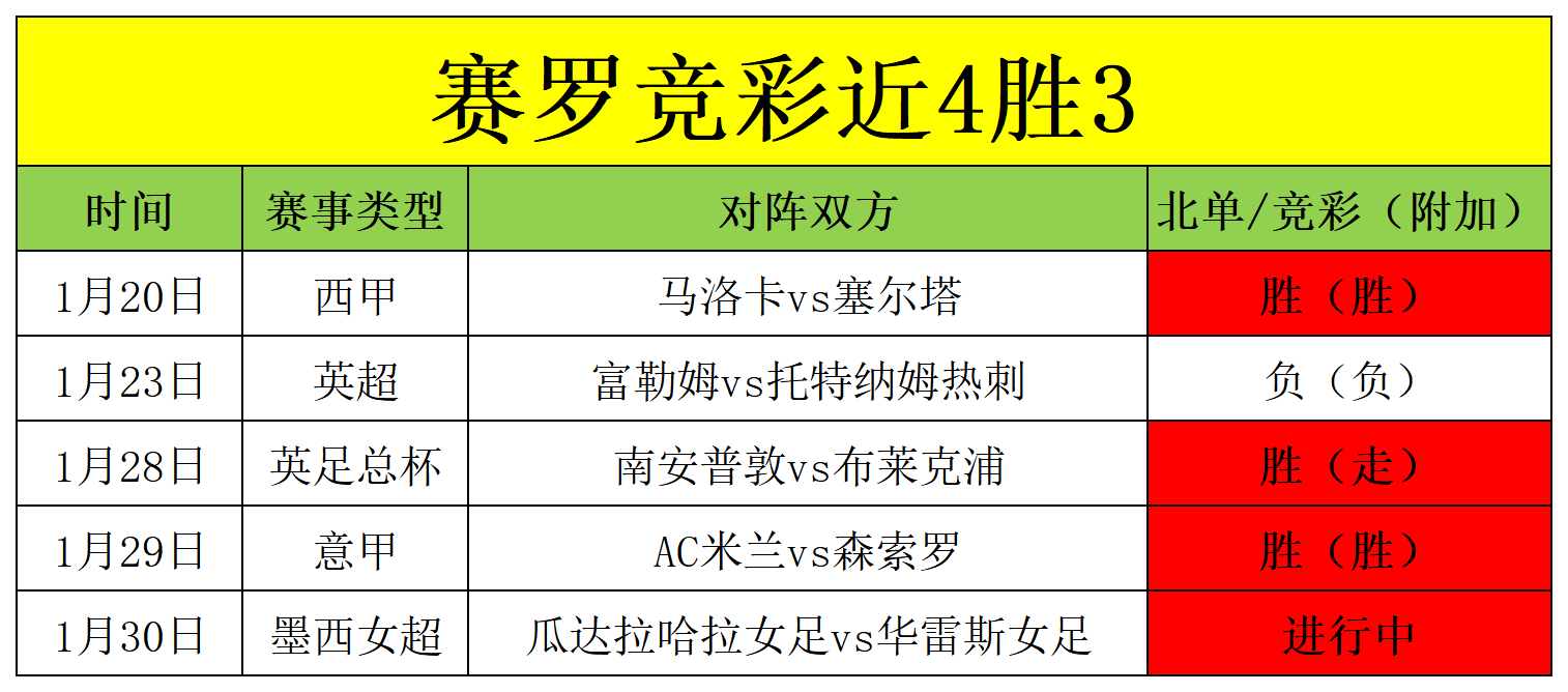 昨天分享的墨西女超还在进行中,近期竞彩战绩4胜3,目前2连胜,笔者状态正佳,今天锁定土超,冲刺连胜。