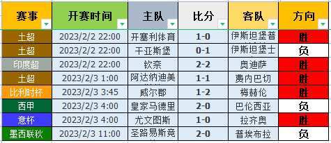 天的比赛较多,笔者挑选了部份夜场比赛出来作为本期的参考,希望能够打出对应的高概率方向!