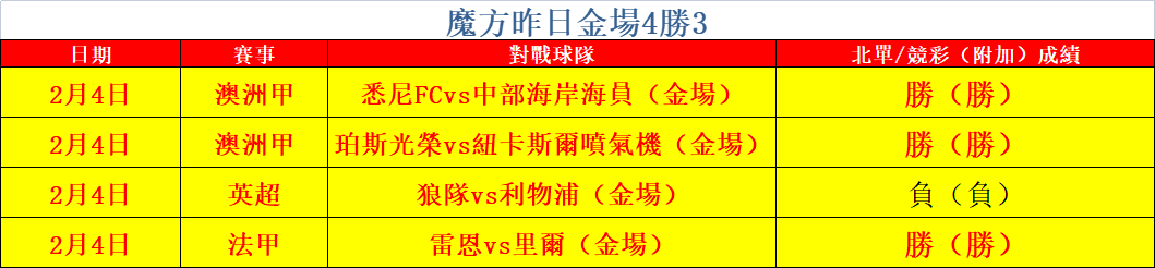 魔方昨日金場打出4勝3。接下來魔方將會不斷努力務求精益求精!今日繼續對五大聯賽進行精研。