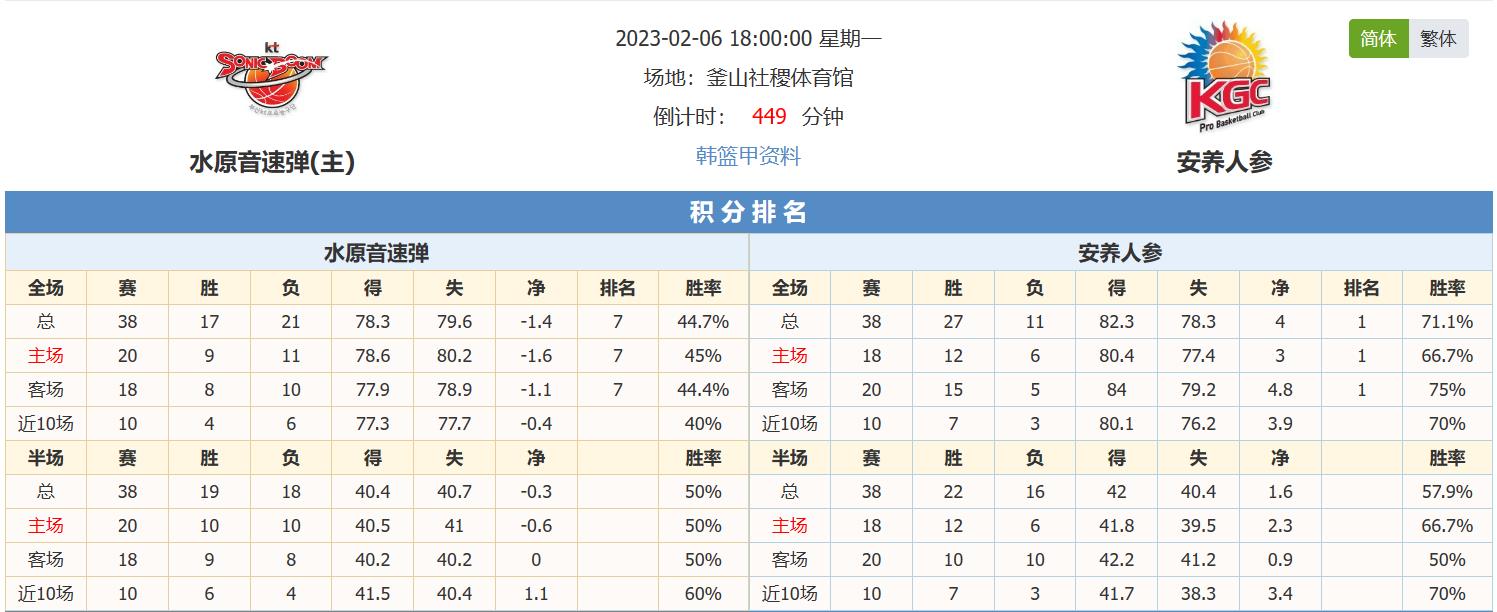 北京时间2月6日18:00,韩篮甲赛事音速弹对战安养人参,音速弹击败飞马拿下二月首胜,再度迎战安养人参能否凭借战绩再胜对手,而安养人参目前状态继续上升,当下能否利用历史优势抗衡。此役双方将会上演怎么样的比赛?让我们拭目以待!