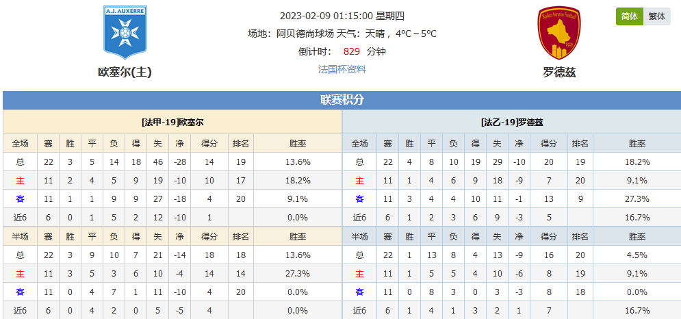 北京时间02月09日01:15,2022-2023 法国杯,由欧塞尔vs罗德兹,两队都是来自不同级别联赛的队伍,主队欧塞尔近期表现比较糟糕,同样客队罗德兹表现也不如人意,今晚比赛在杯赛赛场上会有怎样表现?