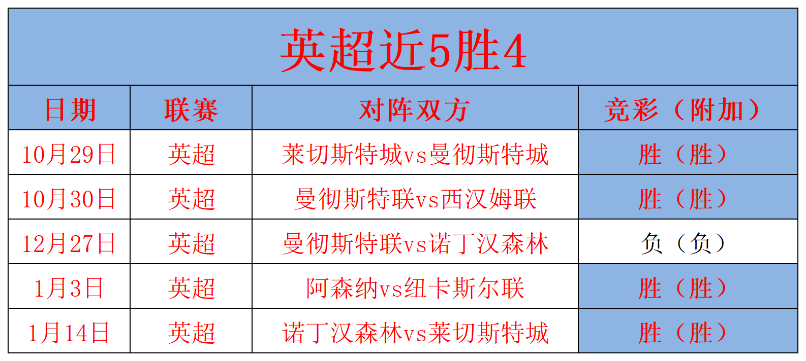 上一期分享的西甲联赛准确打出,近期整体战绩20胜12,保持稳定,今天进行一场英超的分析,英超近期战绩5胜4,胜率高达80%。