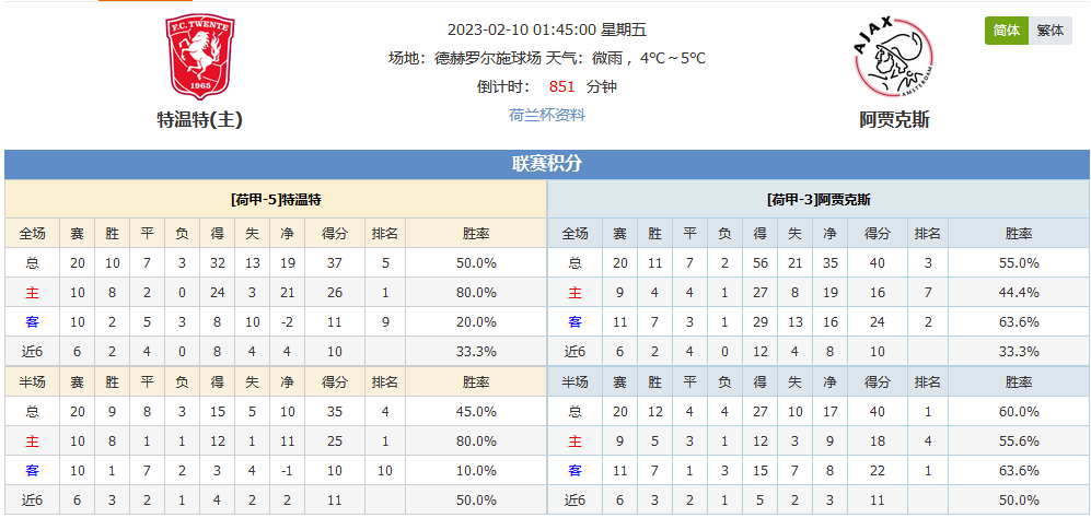 北京时间02月10日01:45,2022-2023 荷兰杯,由特温特vs阿贾克斯,两队都是荷甲上游球队,在联赛表现都比较稳定,今晚来到荷兰杯的赛场上他们又会呈现怎样的表现呢?