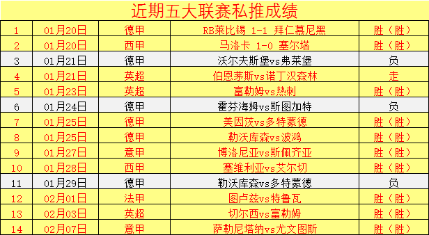 昨天私推3胜2,德乙和意乙成功打出,英冠则有点遗憾。公推文章10胜8,近期五大联赛私推成绩13胜10,状态稳定。今晚再接再厉,争取胜利,欢迎关注。