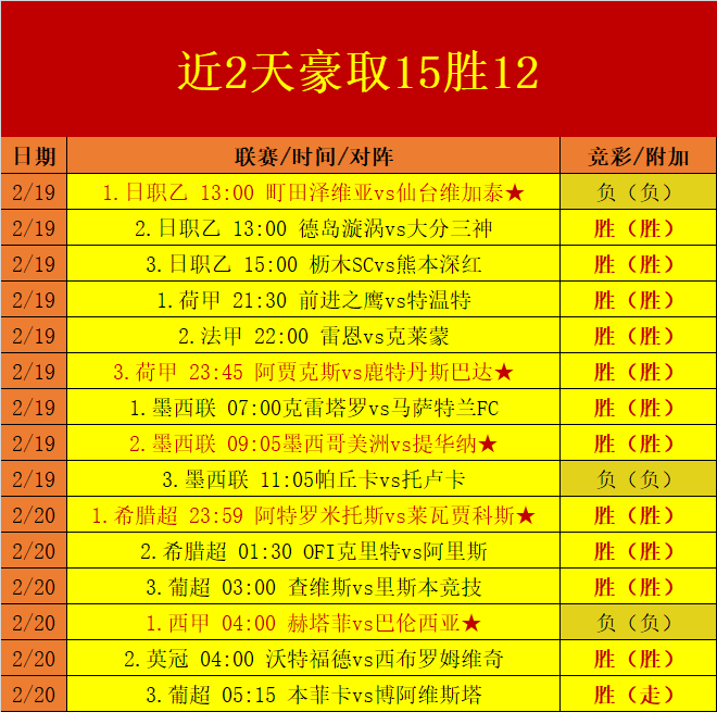 昨日比赛2个板块继续交出优秀表现,取得了6胜5的精彩收获,延续此前周末收官优秀成绩,近15场比赛里取得了12场的胜利观点分享,以一个充足的优势基础打开了本周的新胜利局面!